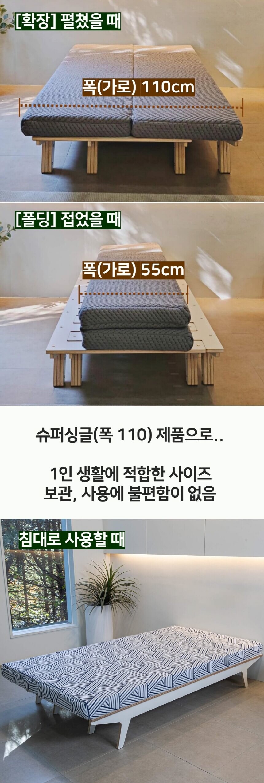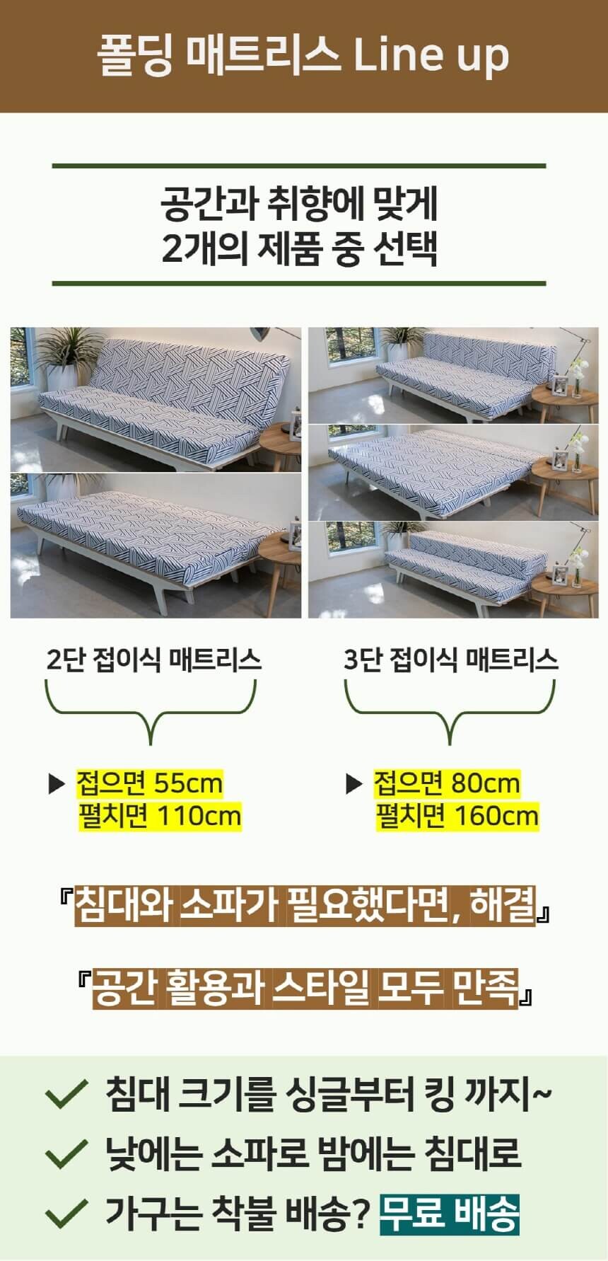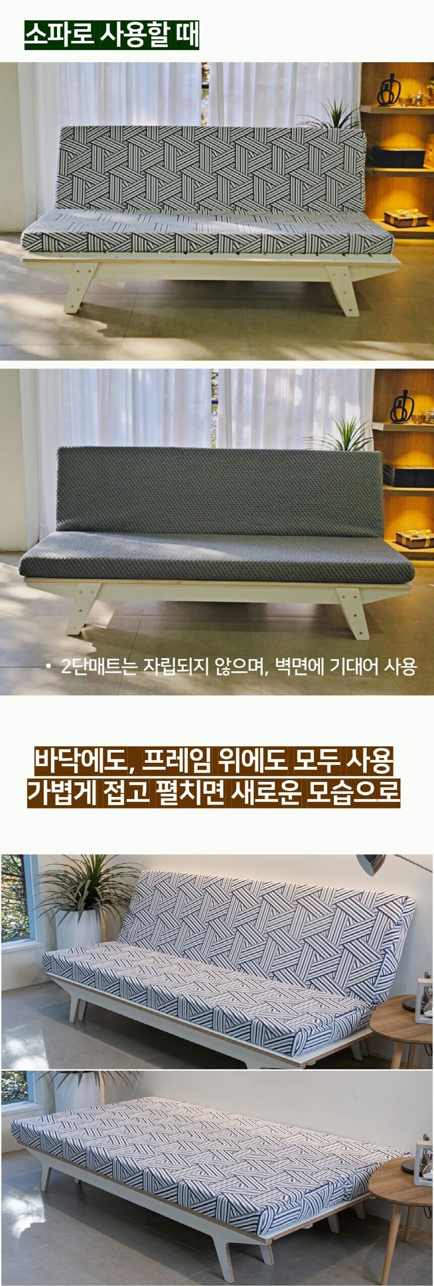 공간활용 접이식 매트리스-2단 소파베드(세로 폴딩/싱글~슈퍼싱글침대 확장)
