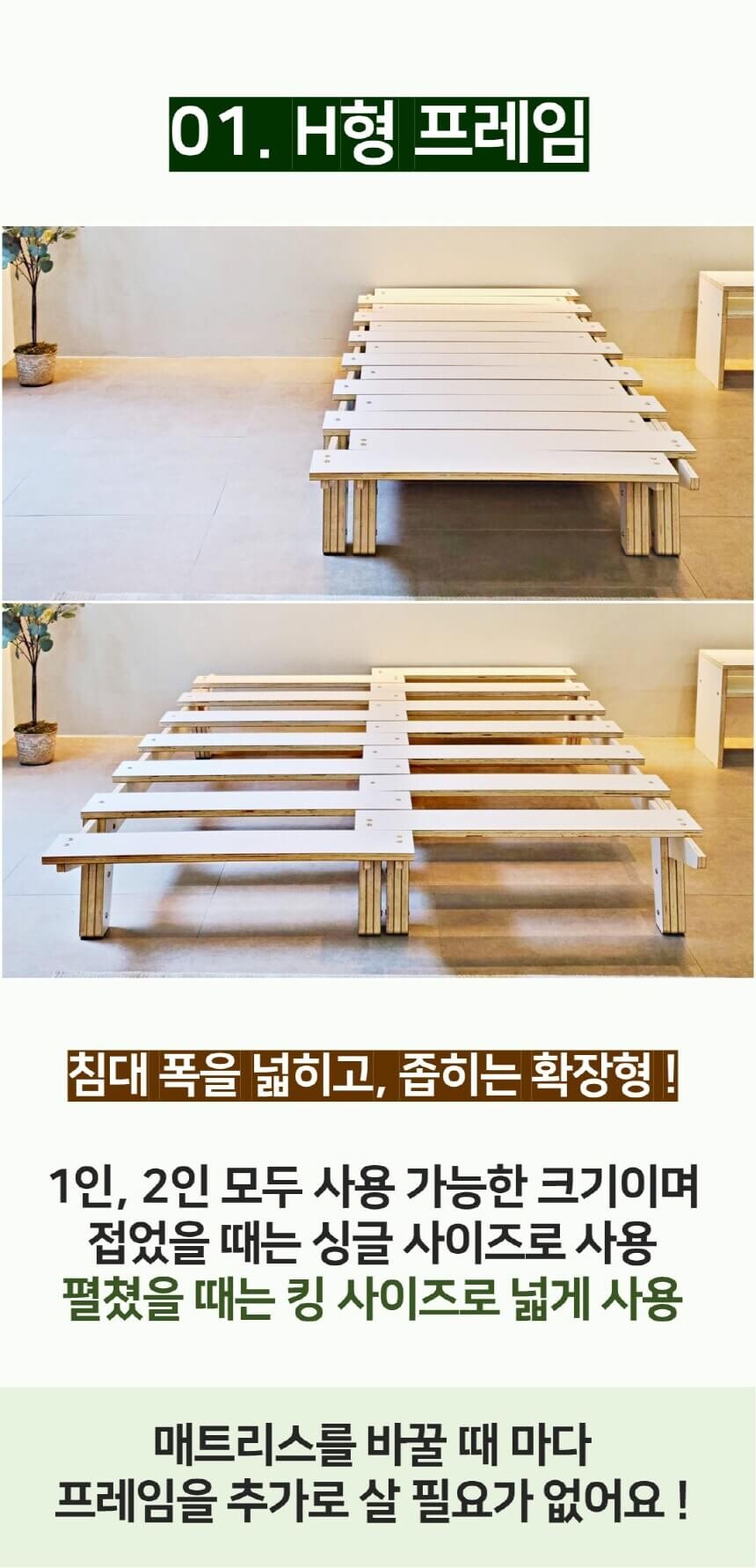 H형 프레임(싱글부터 킹까지 확장)